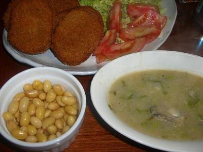 コロッケ150円分とキャベツで〆て275円4人分の夕食とあいなりました。