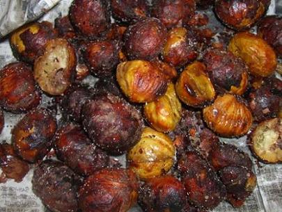 渋皮ごと油で揚げて塩をまぶす。